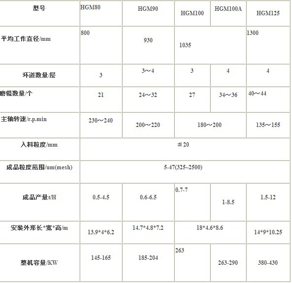 HGM三環(huán)中速超細磨粉機:加工細度在325-3000目之間(細度可以任意調(diào)節(jié))。