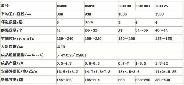 元明粉微粉磨的技術(shù)參數(shù):